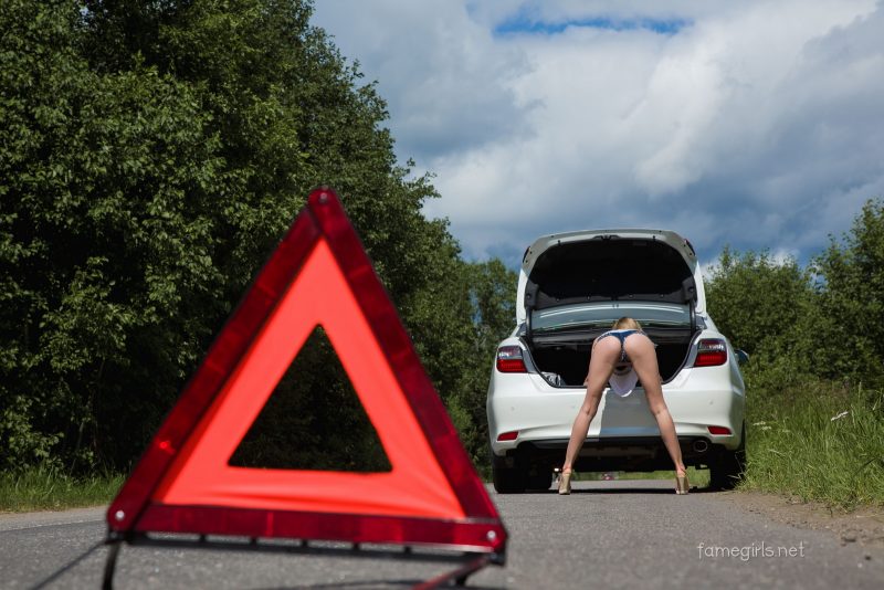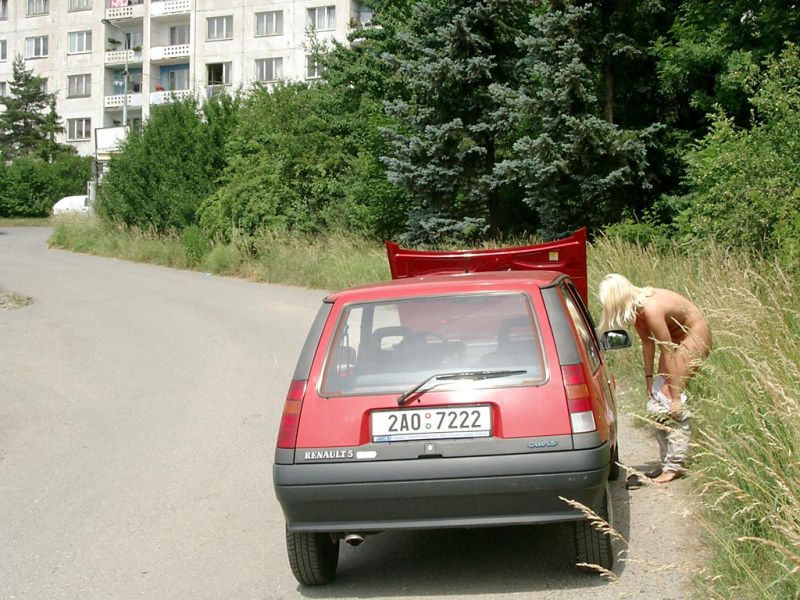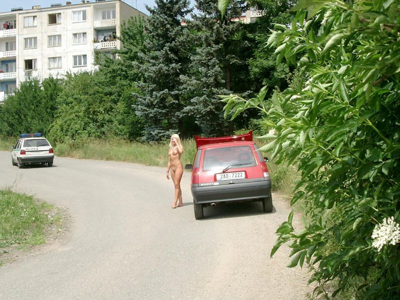 Nude in public : posee en carro