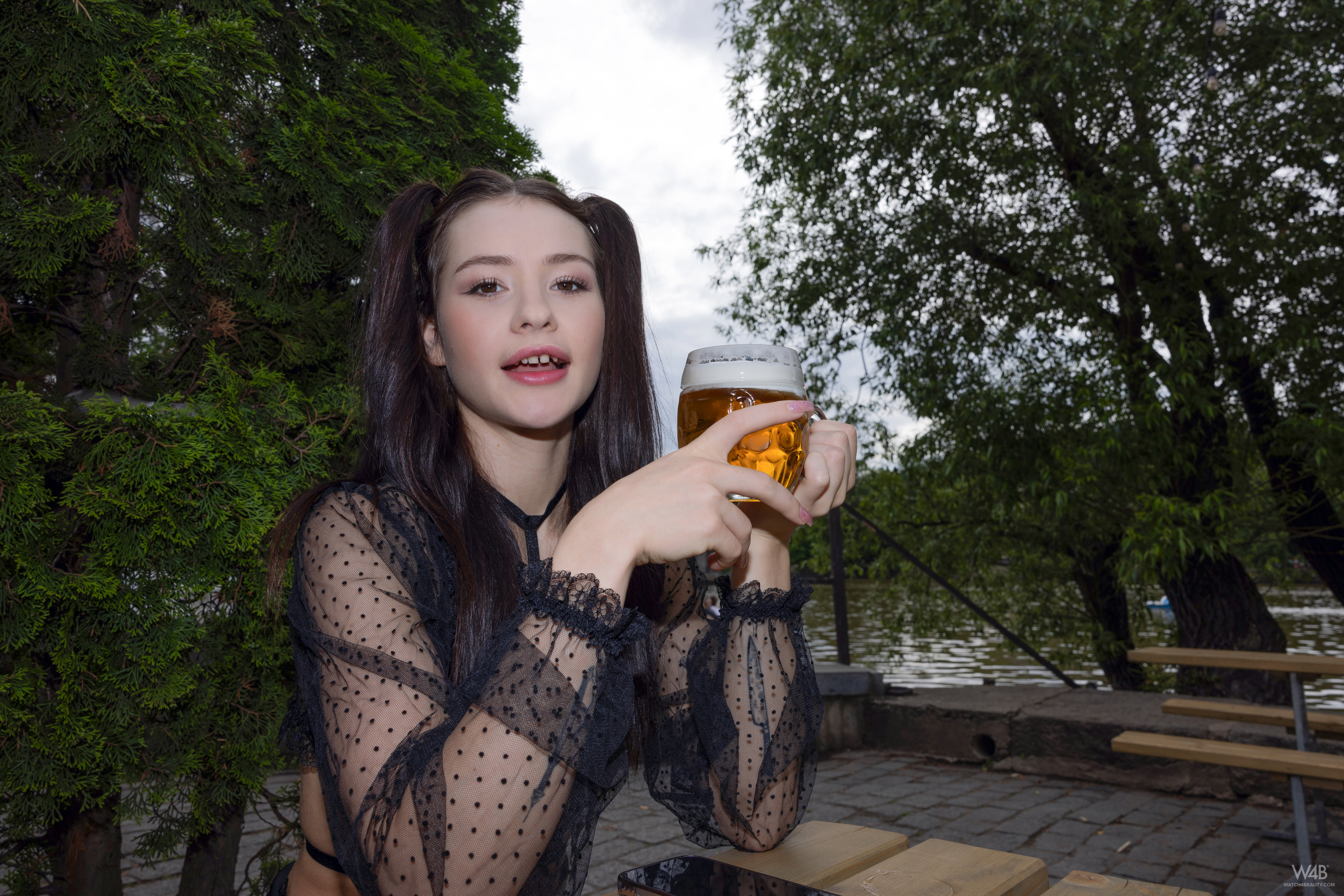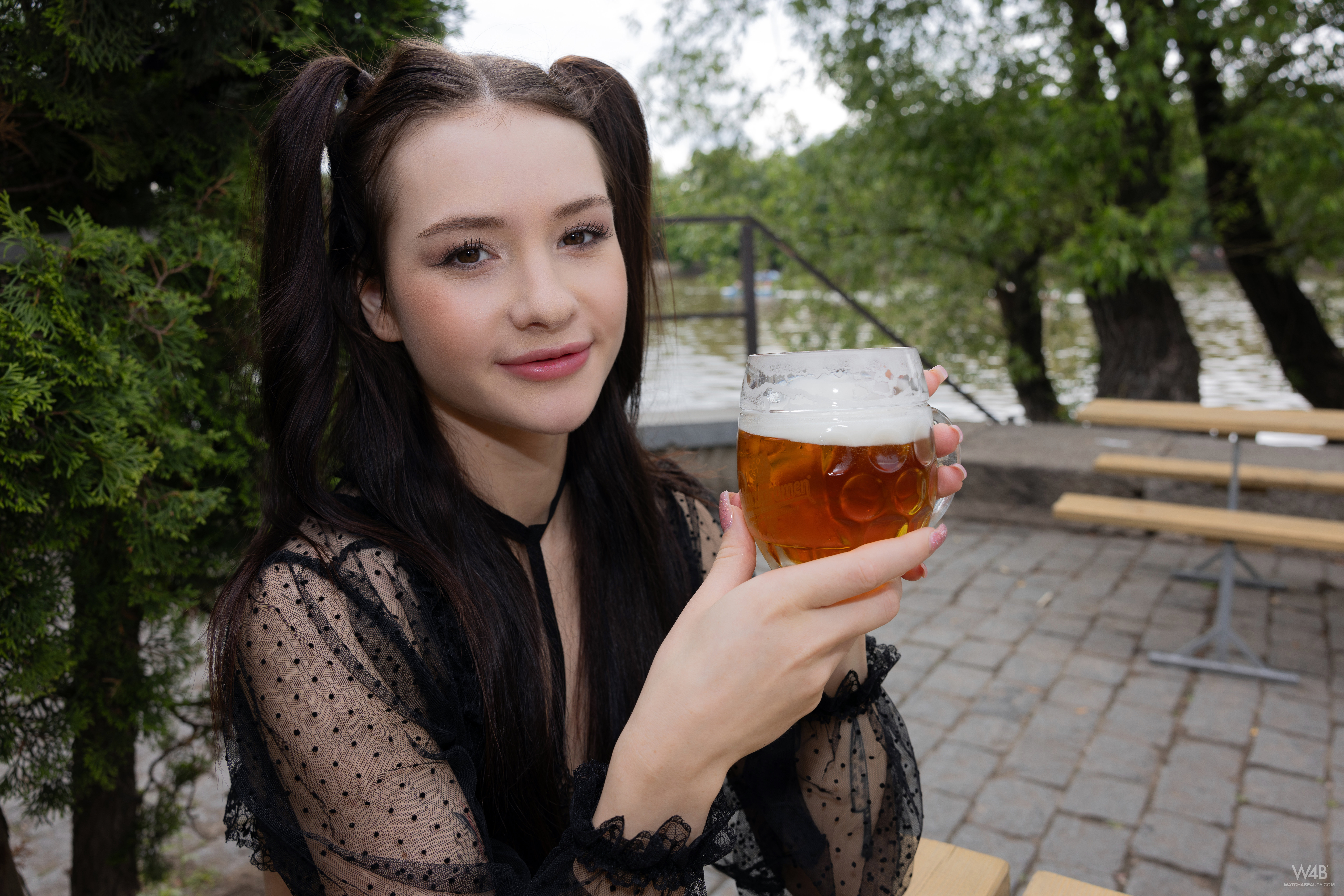 A young girl walks naked through the streets of Prague